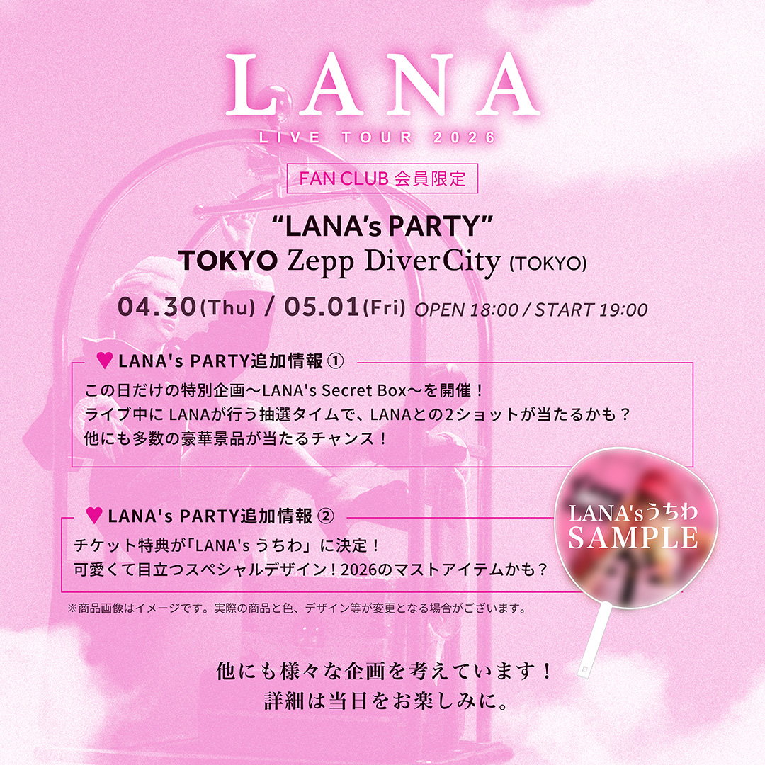 ファンクラブ会員限定ライブ「LANA’s PARTY」について、追加情報をお知らせいたします。